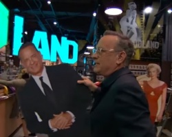 Шоумен Джимми Киммел в прямом эфире раскрутил славящегося безупречной репутацией Тома Хэнкса на небольшой грабёж среди бела дня. Как грабитель он был очень мил и просто очаровал своих жертв.